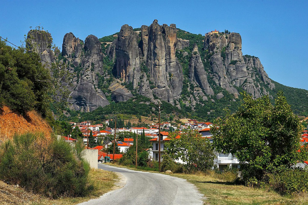 Stop for coffee, lunch, or a short walk in the charming town beneath the Meteora rocks.
